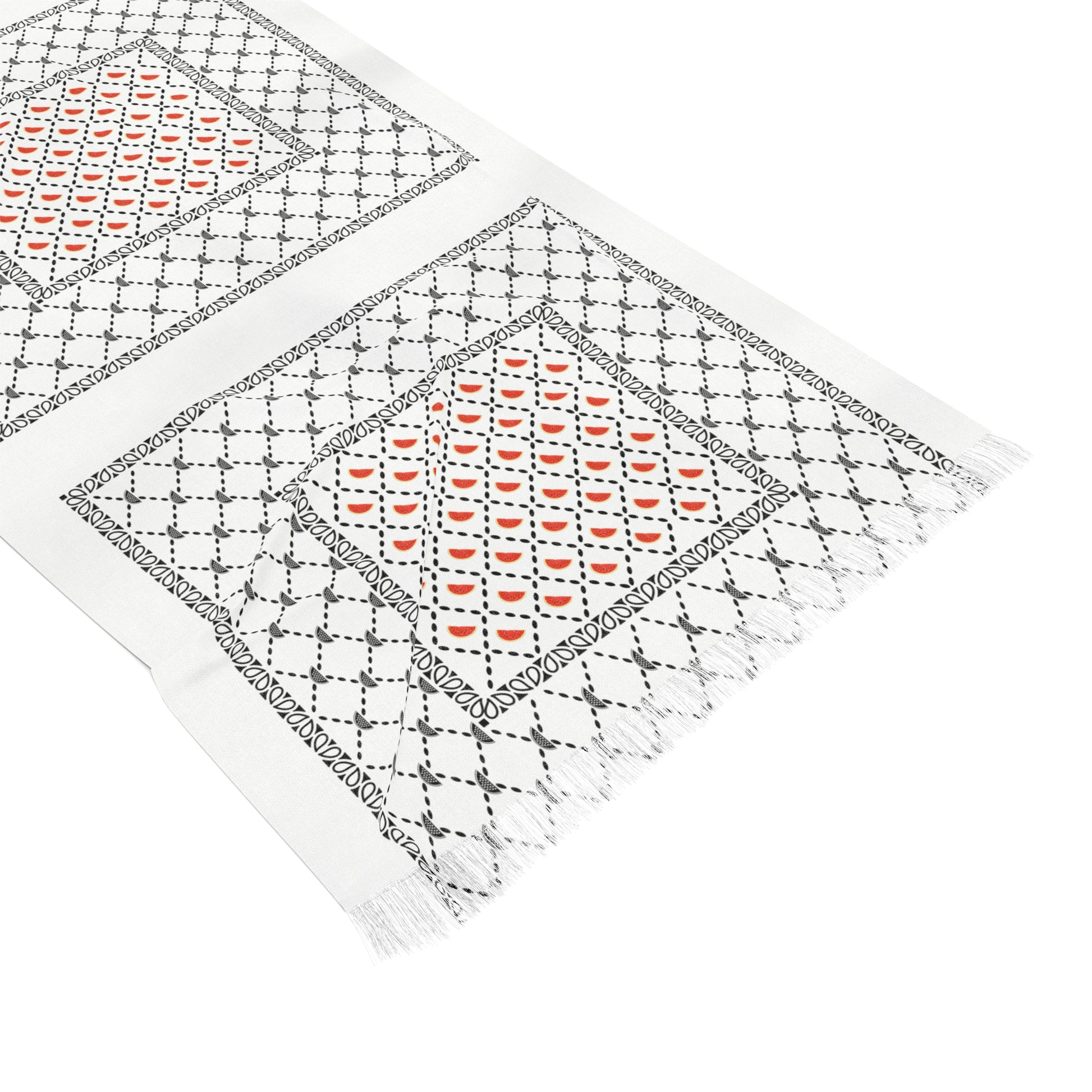 Looking to make a statement? Well look no further than this scarf, if scarves are your thing then this is the hit of them all. A keffiyeh inspired design with watermelons in the middle. Not only is this aesthetic, a true fashion statement, it is a statement of resistance. But wait...there is more, proceeds from this will benefit the PRCS or the PCRF.